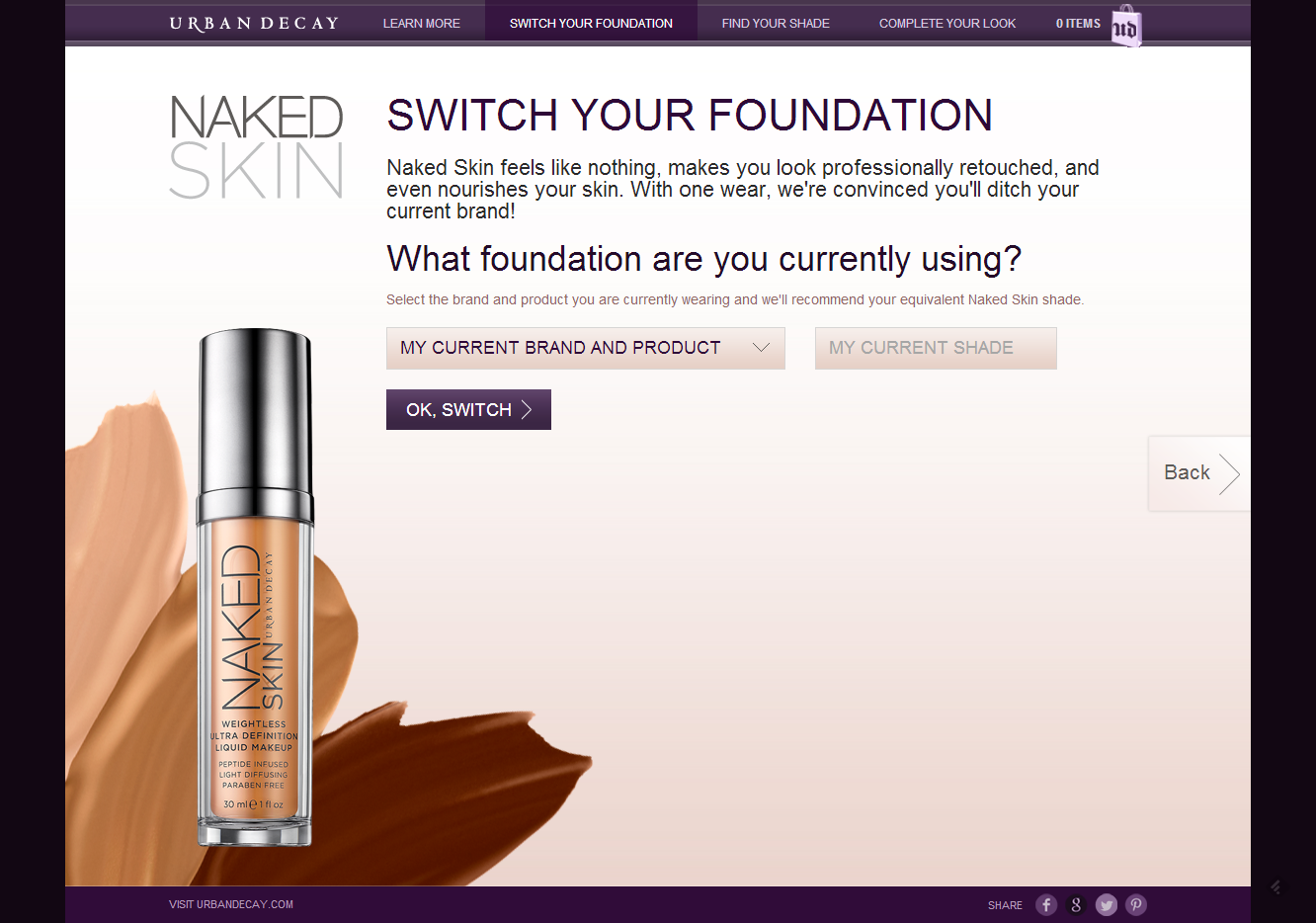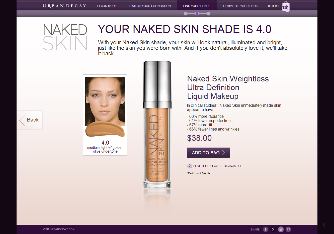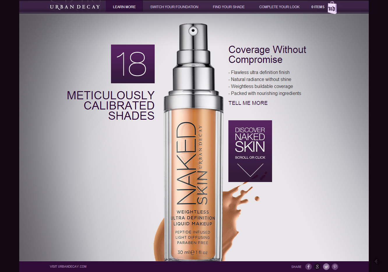 Urban Decay was launching a new line of liquid foundations under its NAKED collection. We created a guided selling experience to introduce the product and help customers find their shade.