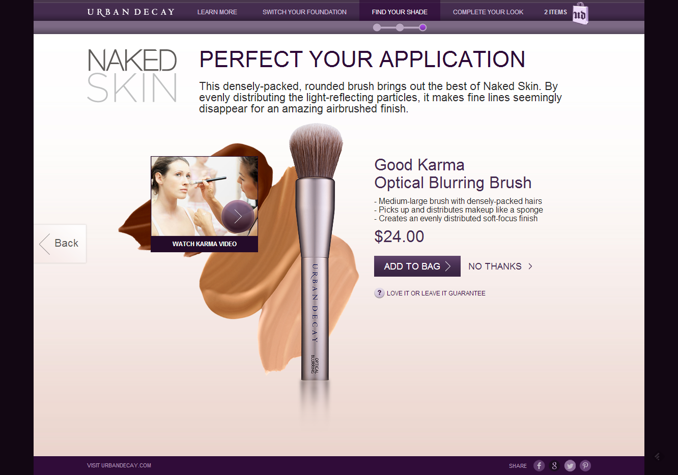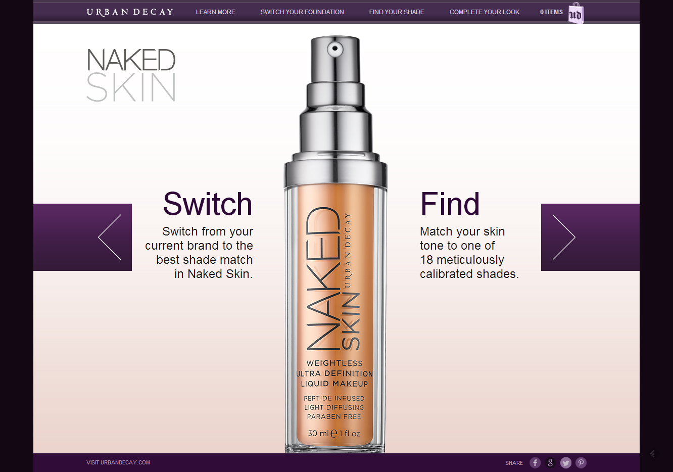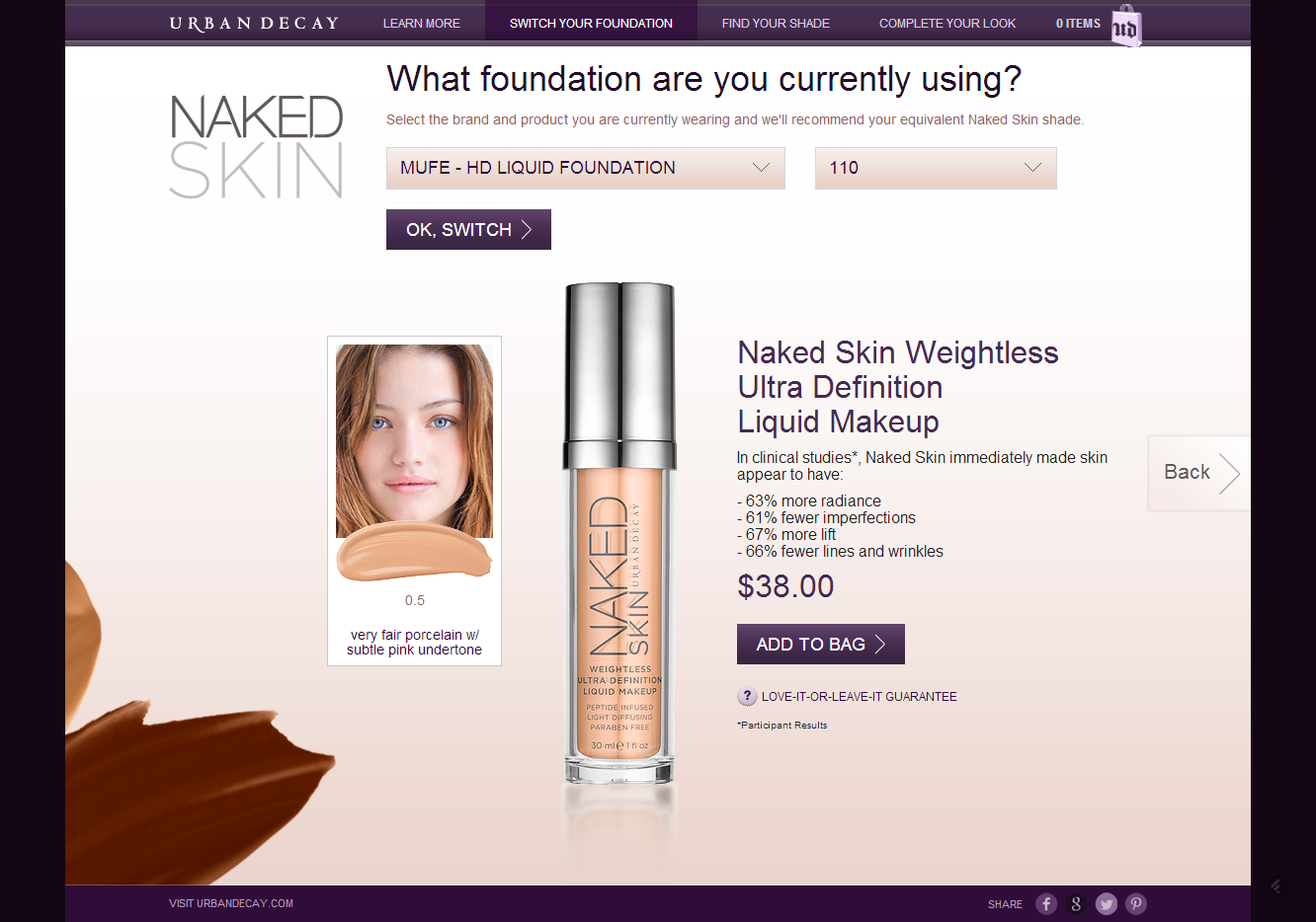 Urban Decay was launching a new line of liquid foundations under its NAKED collection. We created a guided selling experience to introduce the product and help customers find their shade.
