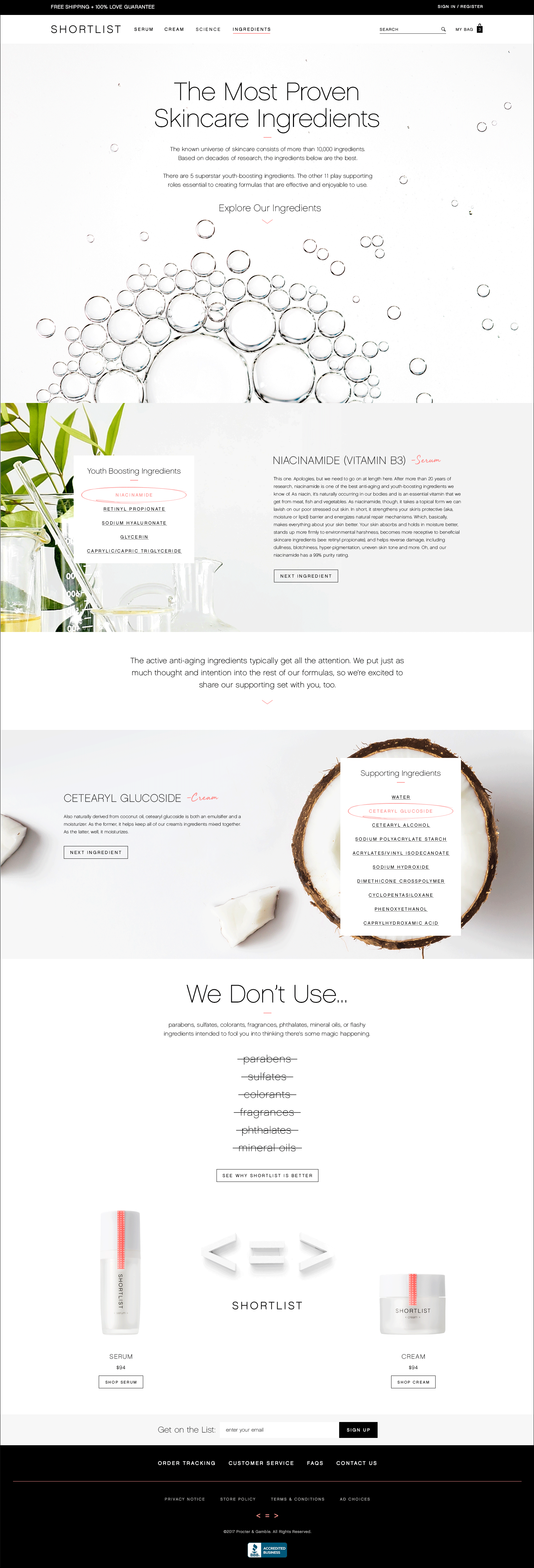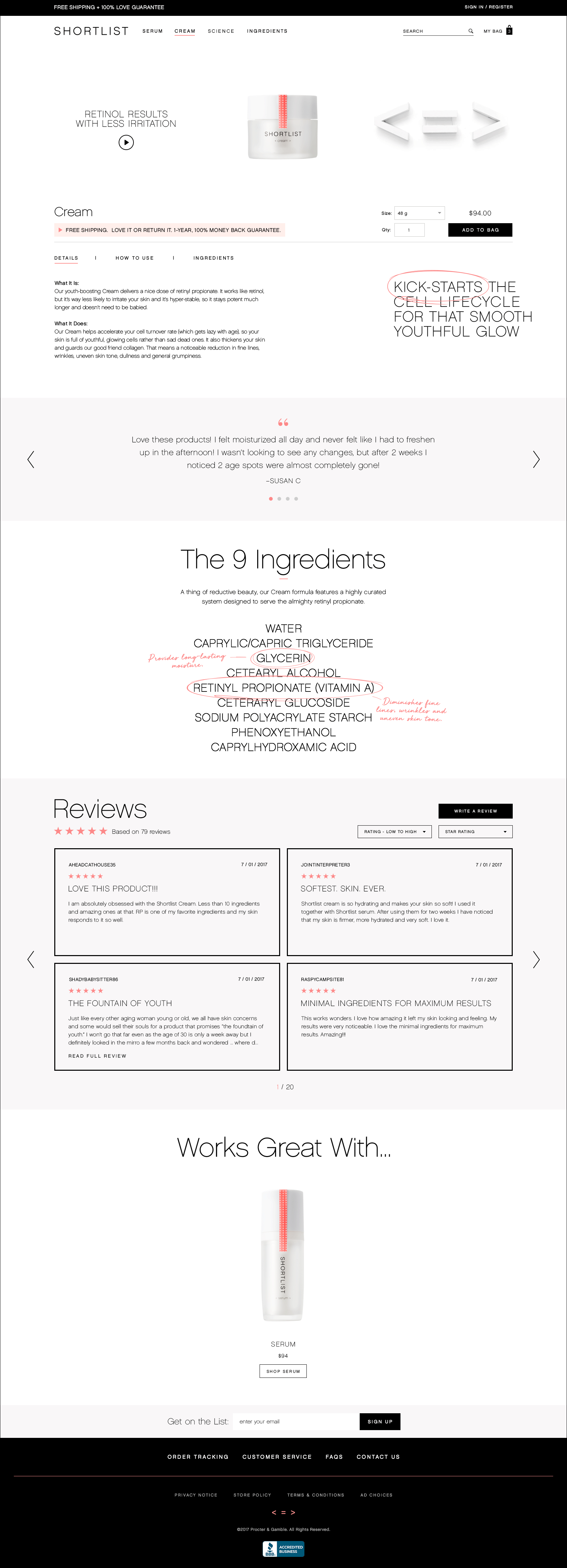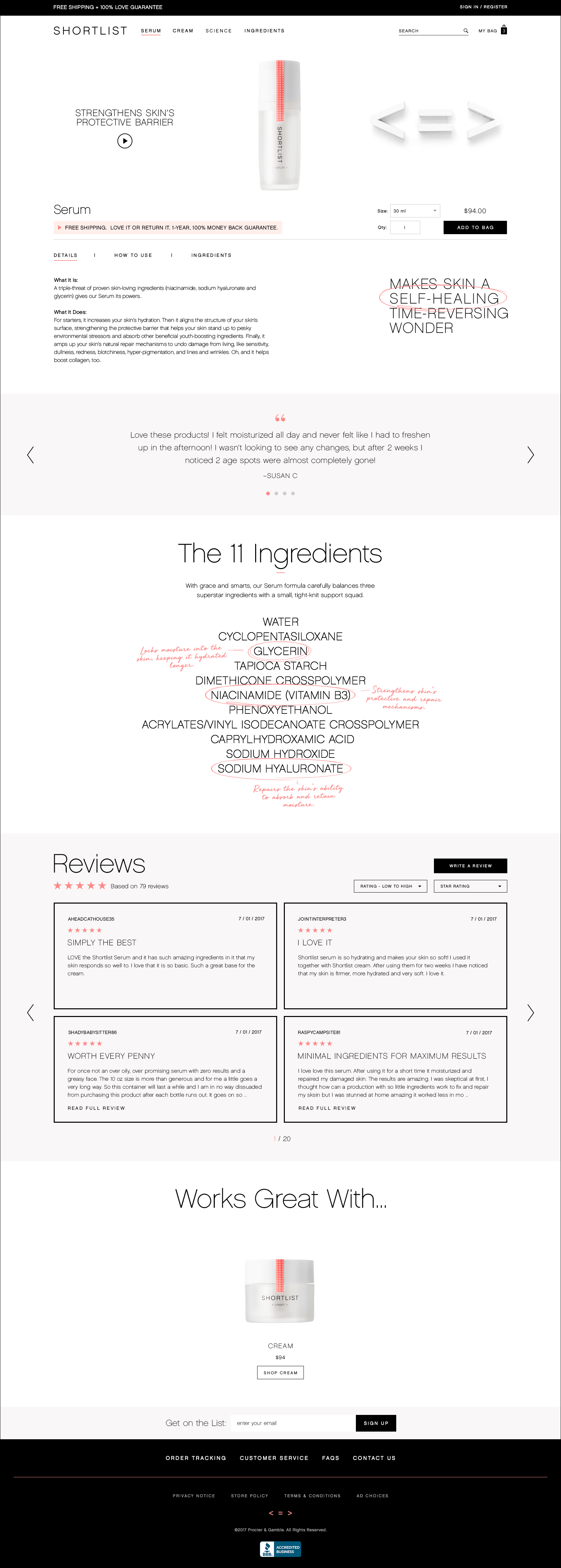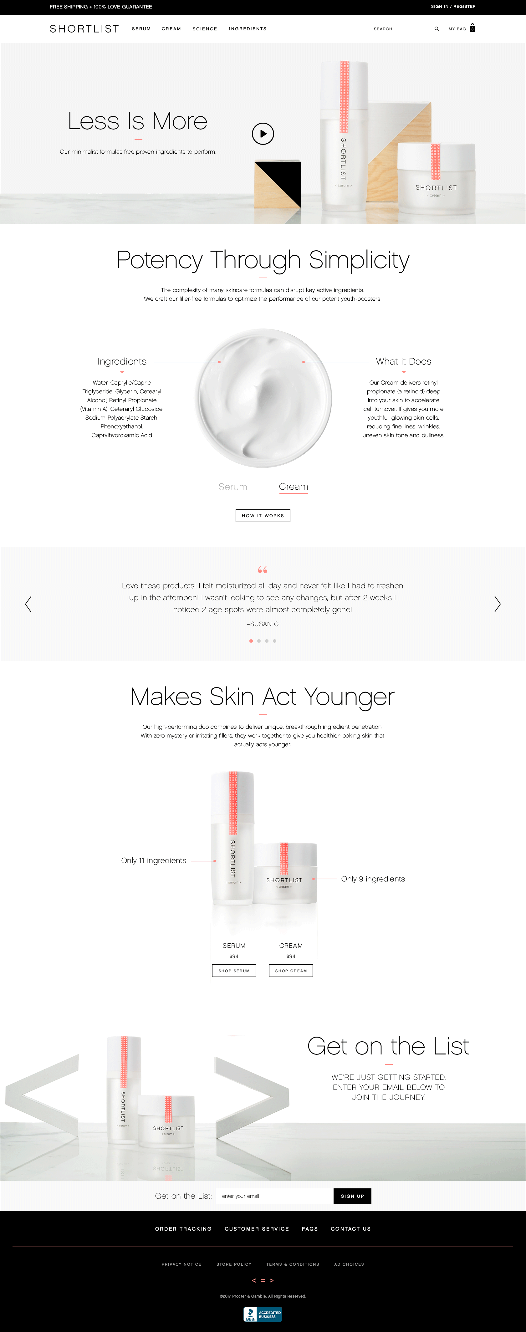 Shortlist is a new brand from the labs of Olay and SK-II at Procter & Gamble. Using only scientifically proven anti-aging in the simplest formulas possible, the brand offers a potent but minimalist approach to skincare.