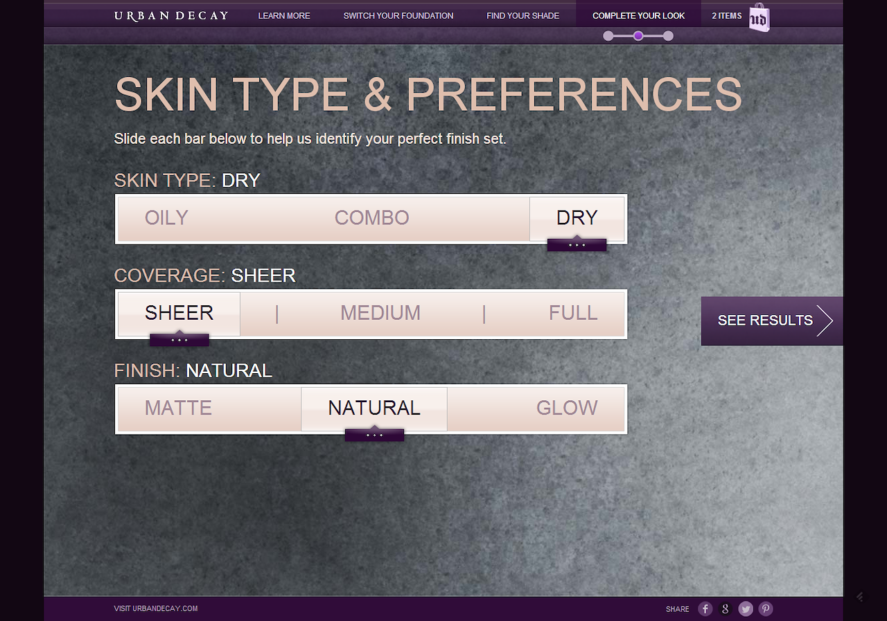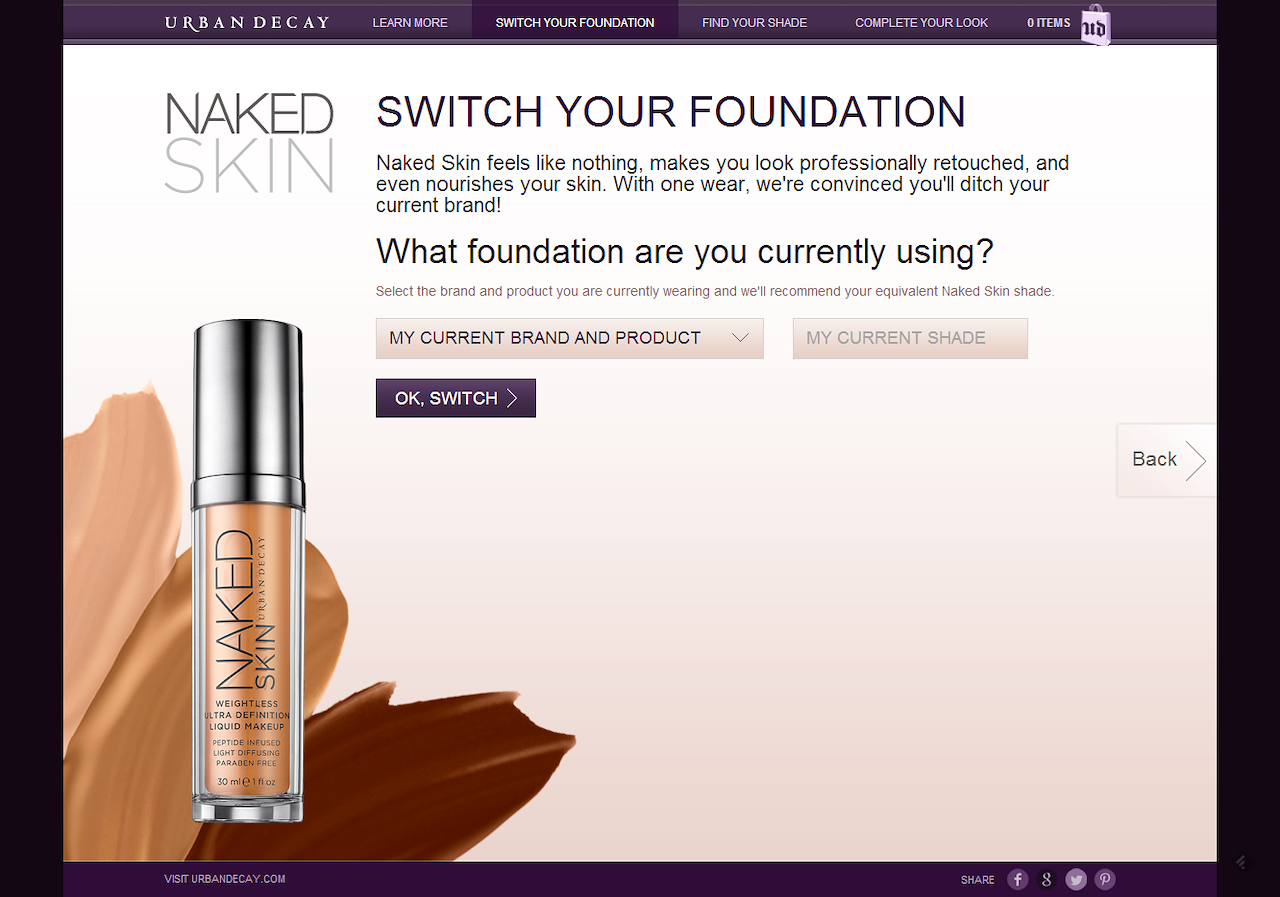 Urban Decay was launching a new line of liquid foundations under its NAKED collection. We created a guided selling experience to introduce the product and help customers find their shade.